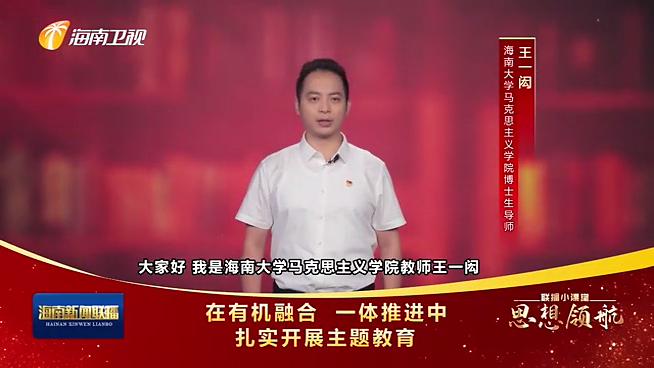 自深入开展学习贯彻习近平新时代中国特色社会主义思想主题教育以来,米兰milan官方网站党委高度重视,充分发挥马克思主义理论专业优势及全省理论宣讲先进集体的影响力,精心组织并挑选王一闳、刘涵、赵静波、龙借琼等四位政治素质过硬、理论水平高的青年党员思政课教师,与海南广播电视总台合作共同录制“联播小课堂”,成功于2023年4月24日、4月30日、5月1日、5月2日的《海南新闻联播》中分别播出《在有机融合 一体推进中扎实开展主题教育》、《坚持以人民为中心的发展思想》、《全面深化改革开放》、《迈上全面建设社会主义现代化国家新征程》四个专题视频节目,以此持续强化社会面宣传,积极营造浓厚的学习宣传“主题教育”的社会氛围。