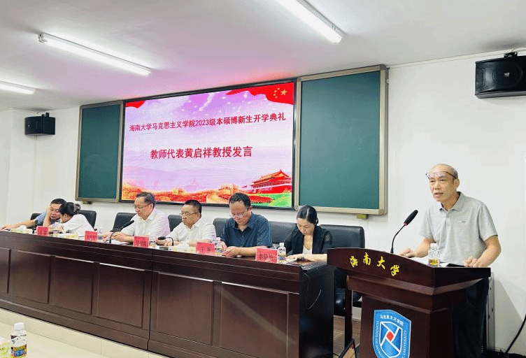张继友在开学典礼上发表热情洋溢的讲话,他代表学校党委和全体海大师生对米兰milan官方网站2023级新同学表示祝贺和欢迎,并为全体新同学上了一堂生动的“开学第一课”。他从马克思和燕妮“为全人类而工作”的传奇爱情故事、习近平总书记七年知青岁月的动人成长故事以及自己学习和实践马克思主义的故事导入,勉励马院学子要努力学习、刻苦钻研,真正掌握马克思主义看家本领,自觉担当起强国建设、民族复兴的历史责任。