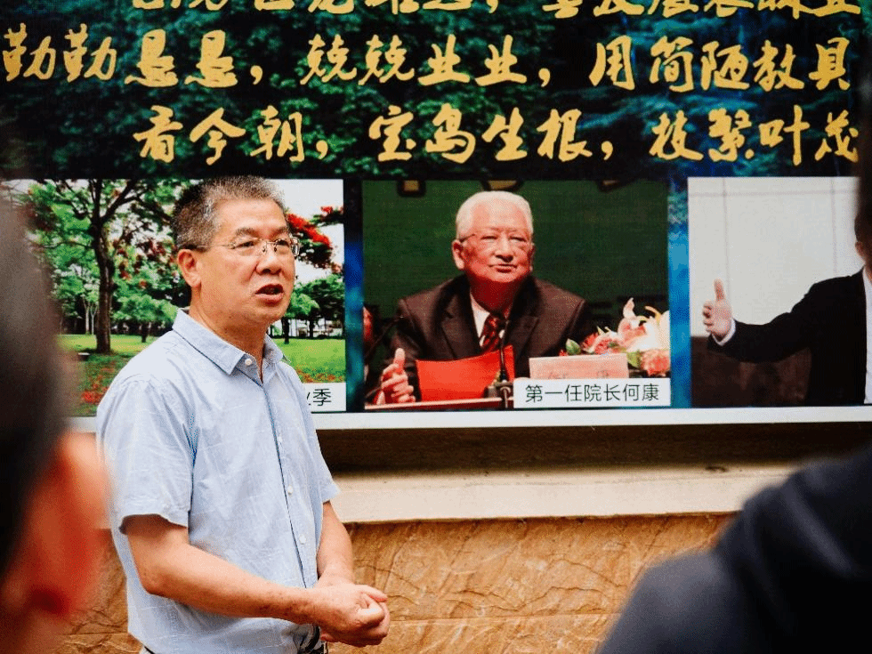 在米兰milan官方网站儋州校区,管委会主任王联春教授为学生们讲述老一辈海大人创业兴校的历史故事,并参观了儋州校区一些历史性建筑。同学们被老一辈海大人艰苦创业精神深深感动,纷纷表示,自己拥有这样好的学习条件,更应该好好学习,报效国家!