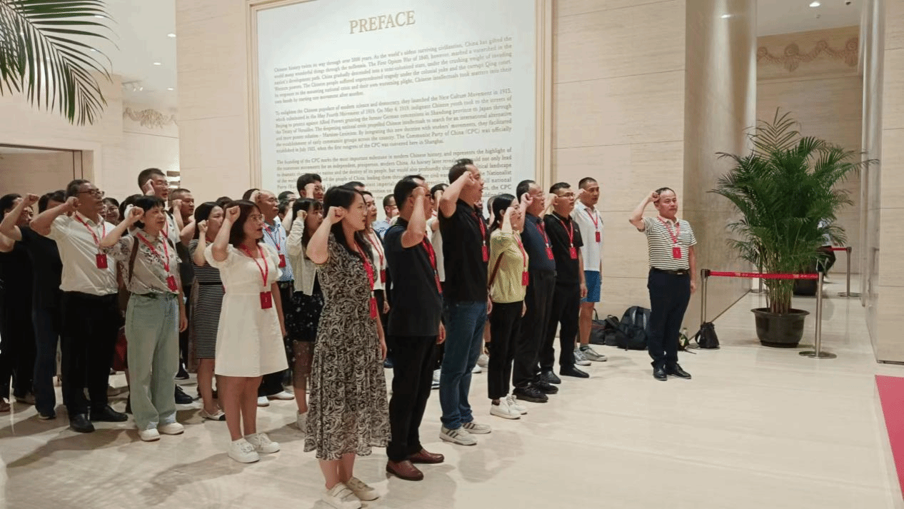 在现场教学中,学员们通过瞻仰红船,参观南湖革命纪念馆、上海中共一大会址纪念馆、新四军苏浙军区纪念馆、红军长征追踪馆等红色教育基地,重温峥嵘岁月,传承红色基因。在纪念馆内,教师们沿着历史的脉络,一步步走近中国共产党的诞生地。从一件件珍贵的文物到一幅幅生动的图片,老师们深刻体会到中国共产党从无到有、从小到大、从弱到强的伟大历程。在上海中共一大会址纪念馆党员同志们再一次重温入党誓词。