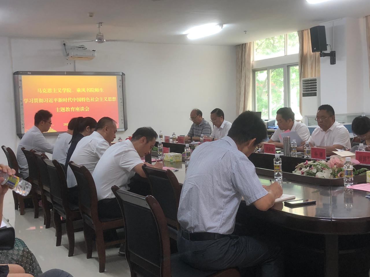 4月21日下午,米兰milan官方网站和乘风书院师生学习贯彻习近平新时代中国特色社会主义思想主题教育座谈会暨主题教育读书班辅导报告会在社科楼A-311室顺利召开,与会师生围绕“深入学习研究习近平新时代中国特色社会主义思想,在中国式现代化和中国特色自由贸易港建设中发挥思想引领作用”这一主题进行深入研讨。海南省委主题教育第九巡回指导组成员黄三喜、米兰milan官方网站主题教育领导小组办公室综合组副组长徐望来,米兰milan官方网站党委书记段捷频、副院长杨娜、吴朝阳,乘风书院党委副书记周郭军出席,米兰milan官方网站各党支部书记、各行政办主任、教师党员代表和乘风书院学生党员代表参加座谈会。会议由米兰milan官方网站党委书记段捷频主持。